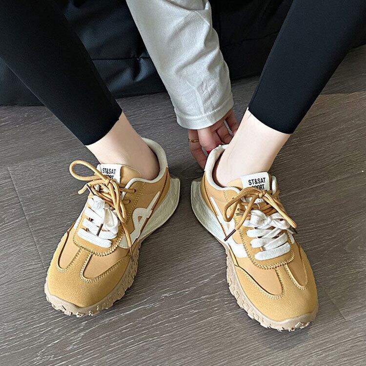 【厚底スニーカー 韓国 韓国ファッション レディース 美脚 脚長 トレンド かわいい おしゃれ シンプル ストリート カジュアル シューズ 白 ホワイト 黄 イエロー 軽量 通気性 歩きやすい クッション性 通勤 通学 春 夏 秋 冬 新作】