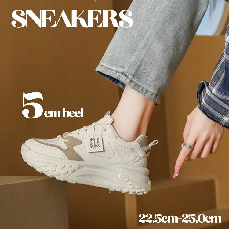 厚底ダッドスニーカー レディース 韓国風デザイン 7cm軽量ソール 美脚 スタイルアップ ベージュ 歩きやすい 疲れにくい トレンドスニーカー ダッドソール 歩行安定 脚長効果 送料無料 おしゃれ かわいい カジュアル