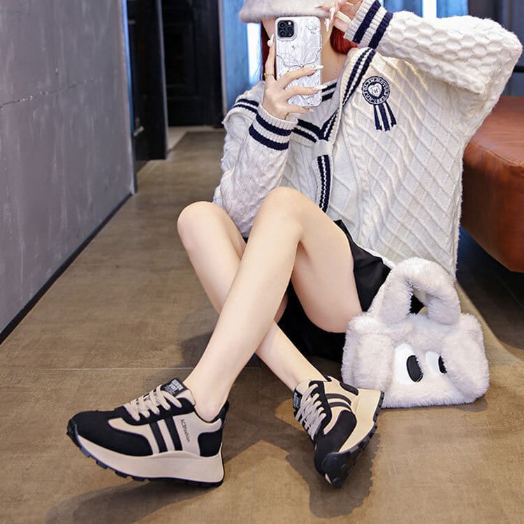 トレンドの韓国風デザイン!厚底でスタイルアップ&軽量設計で歩きやすい。カジュアルにもスポーツにも使えるおしゃれスニーカー。長時間のお出かけやウォーキングにも最適。