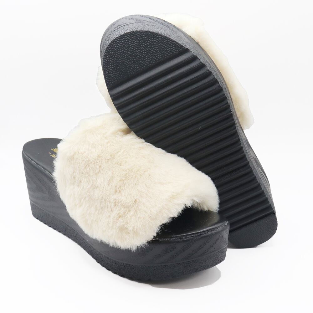 POPOLARE サンダル 厚底 オープントゥ フェイクファーサンダル ウェッジサンダル 6.5cm おしゃれ ボアサンダル ふわふわ 韓流 レディース ガーリ? ミュール ファーボア厚底サンダル モコモコサンダル 2021ss c0409