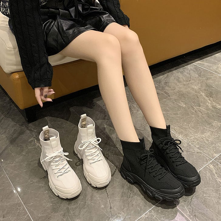 ソックス ブーツ スニーカーブーツ ハイカット レディース 黒 ソックススニーカー ショートブーツ レースアップ 韓国 おしゃれ 大人可愛い 大きいサイズ 疲れない 韓国ファッション 韓国っぽスニーカー p072