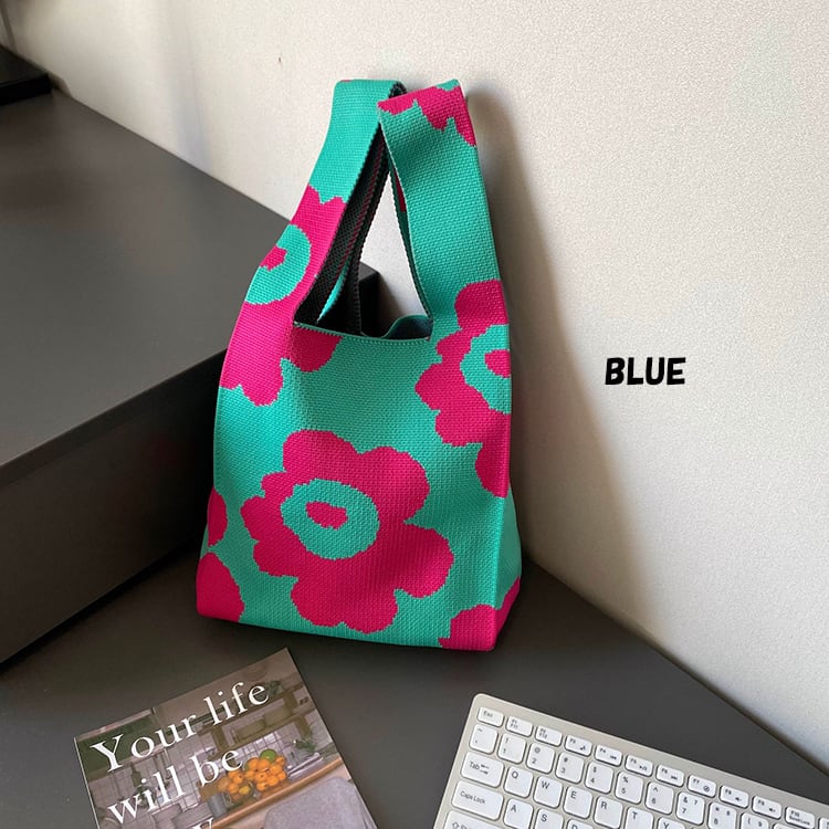 トートバッグ レディース ニット ミニトート ミニバッグ エコバッグ 小さめ 折りたたみ 洗える 巾着 花柄 ニットトートバッグ 千鳥柄 バッグ プレゼント スマホ入れ B064