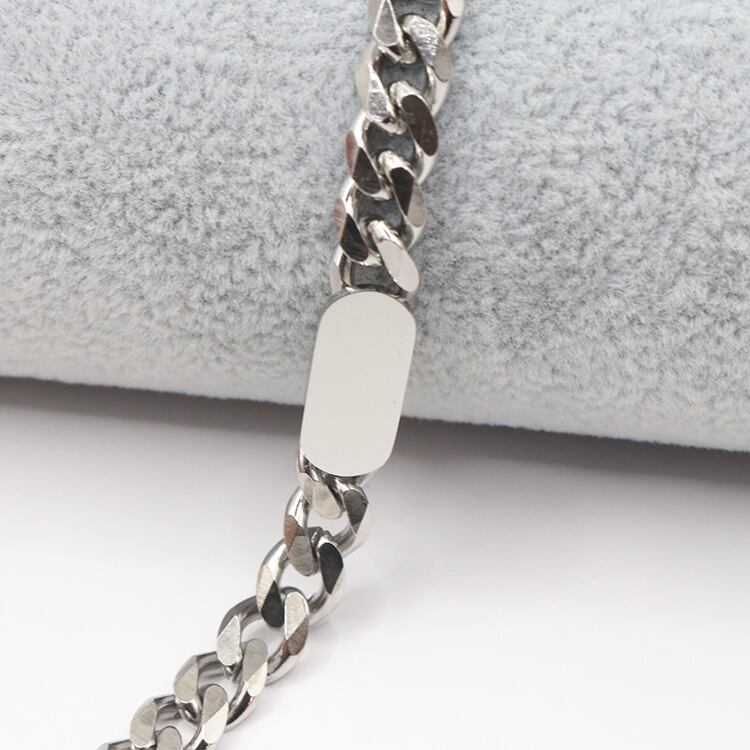 太めのクロスチェーンにプレートがワンポイントのシンプルながらも高級感あるデザインのブレスレット。