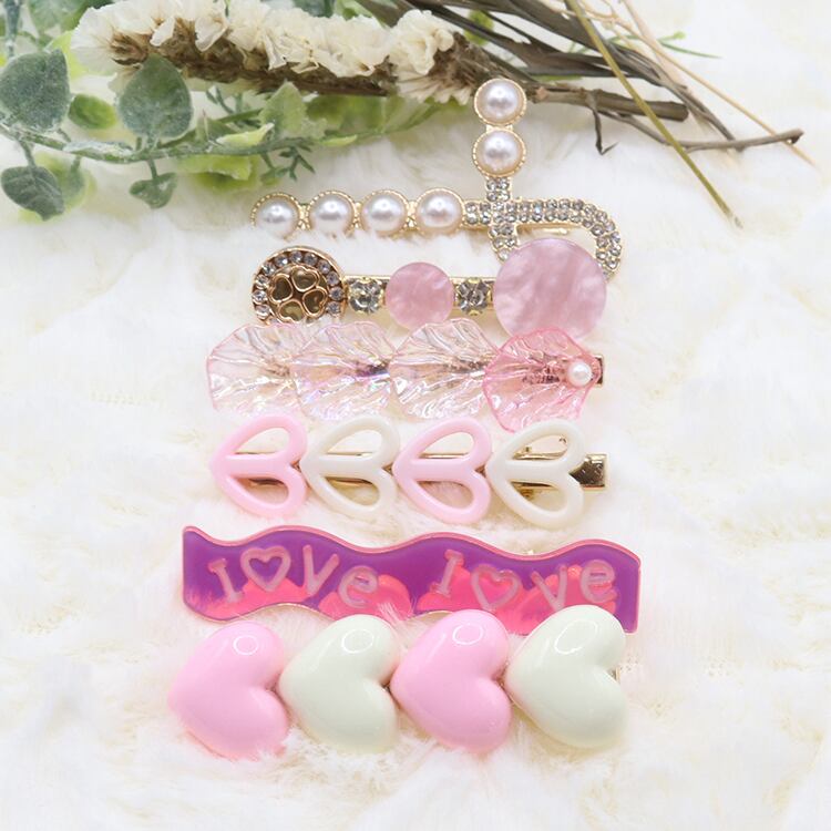 送料無料 ヘアピン 韓国雑貨 大容量ヘアピンセット 6点セット 夏 ヘアアクセサリー ピンク ヘアクリップ ホワイト ハート アクセサリー lovelove 韓国 カラーピン ピン フラワー パール ビジュー おしゃれ 可愛い プレゼント 女の子 ギフト 結婚式 髪飾り 普段使い 誕生日 記念日 hp6set011